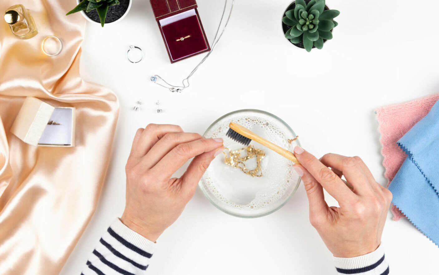 Daca obiectele tale de aur si-au pierdut mult din stralucire, probabil ca trebuie sa le duci la un bijutier pentru a efectua sarcinile de curatare mai precis. Daca nu, va recomandam sa urmati aceste sfaturi simple si practice pentru a va face piesele sa arate ca noi.
